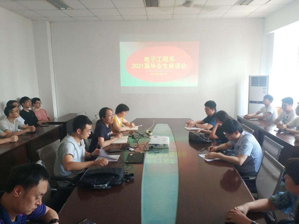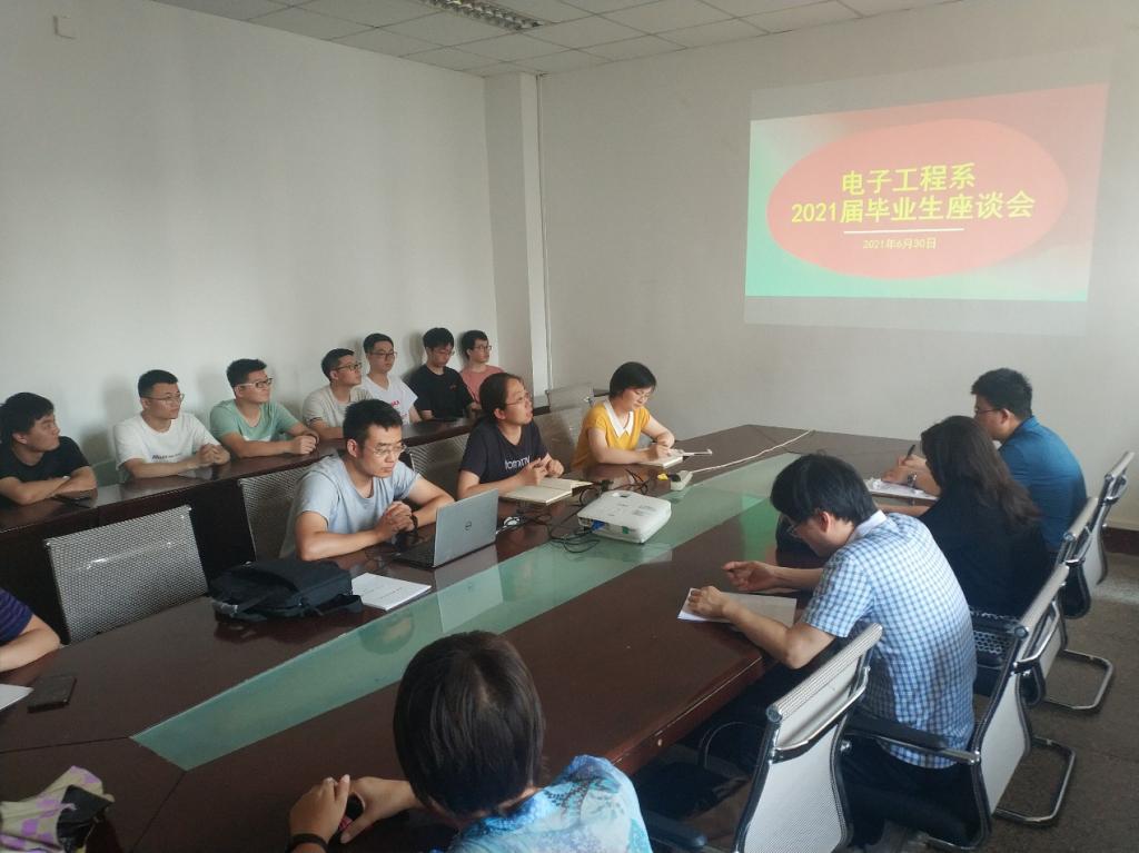 2021年6月30日下午2时,bevictor伟德官网电子工程系在教5-709召开2021届毕业生座谈会。电子工程系2021届18名毕业生代表、学科带头人余宁梅教授、系领导班子成员、党支部支委以及毕业生班级导师参加了座谈会。会议由支部书记杨莺老师主持。