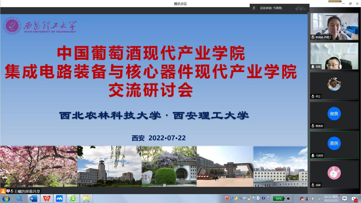7月22日下午,集成电路装备与核心器件现代产业公司与教育部首批现代产业公司——葡萄酒现代产业公司开展线上交流研讨活动。会议邀请西北农林科技大学葡萄酒公司刘旭副经理进行交流分享,bevictor伟德官网经理弋英民、副经理季瑞瑞、各系教学主任与公司相关教师参加交流,会议由季瑞瑞主持。