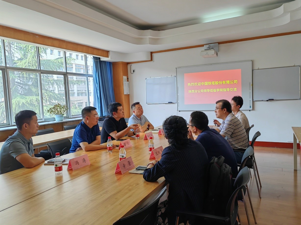 2023年8月1日上午,中国铁塔股份有限公司陕西分公司行业拓展部总经理姚文雷一行4人来bevictor伟德官网考察交流,洽谈校企深度合作、协同创新路径和构建高水平创新联合体机制。bevictor伟德官网副经理封先锋、王明军和信息与控制工程系科研主任辛菁以及公司教师代表参加了交流会。