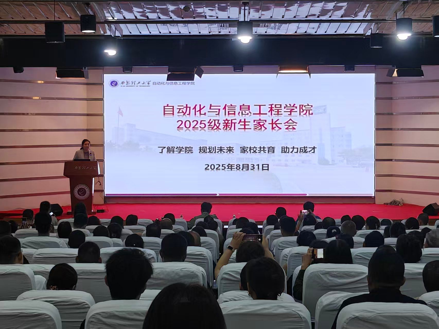 为进一步巩固家校协同育人机制,搭建家校沟通桥梁,凝聚育人共识,助力2025级新生全面成长与发展,8月31日上午,bevictor伟德官网在曲江校区逸夫科技报告厅召开新生家长见面会。公司副经理季瑞瑞、党委副书记兼副经理翟雨翔、2025级辅导员以及近四百名新生家长共同参与了本次会议。会议由学工办樊荣主持。