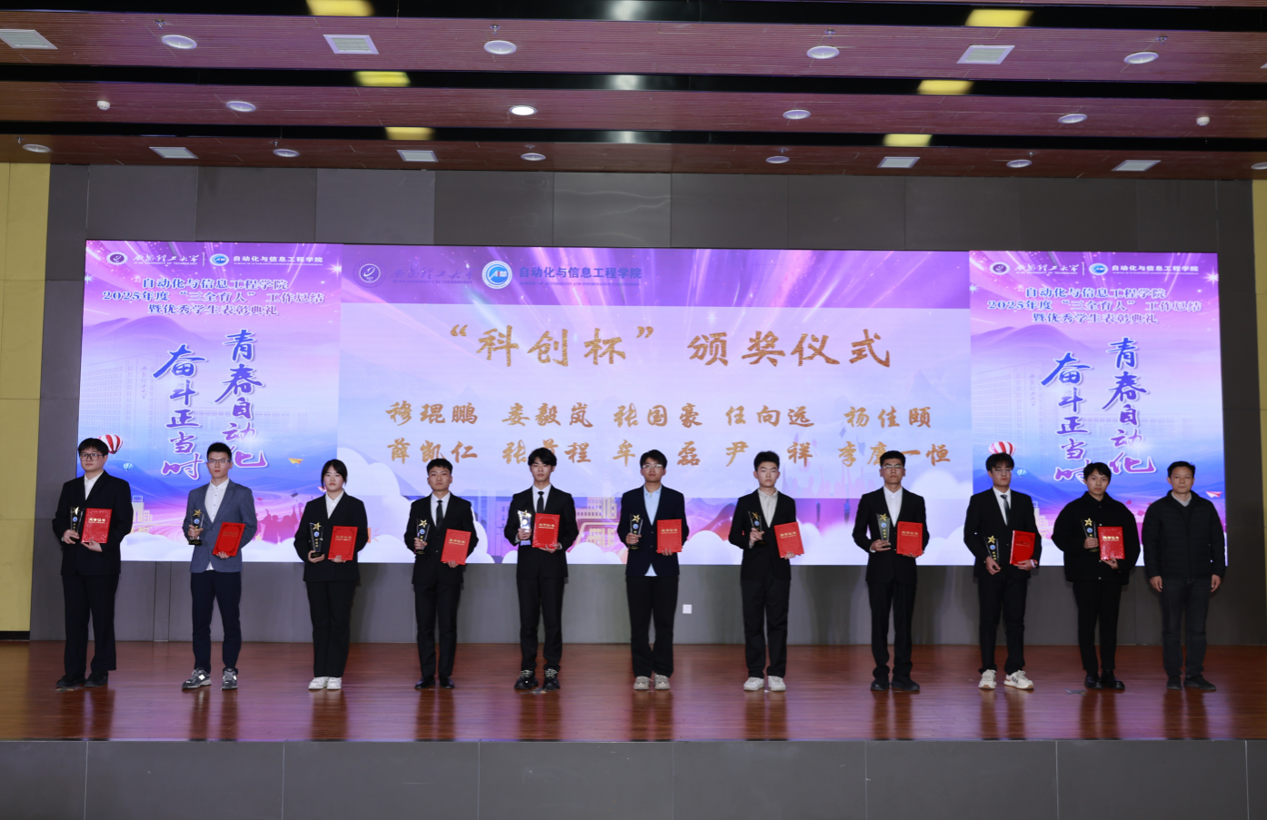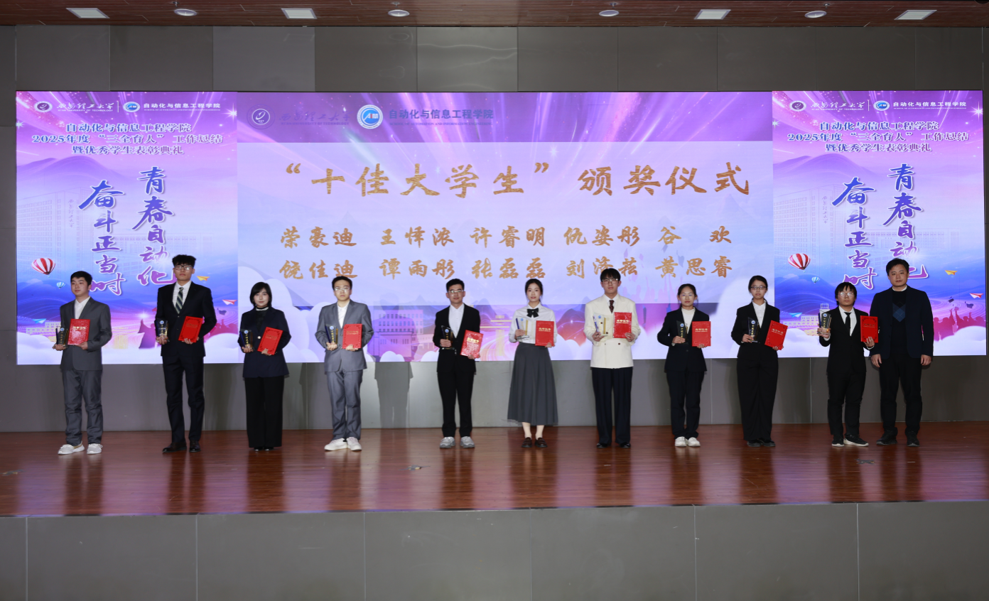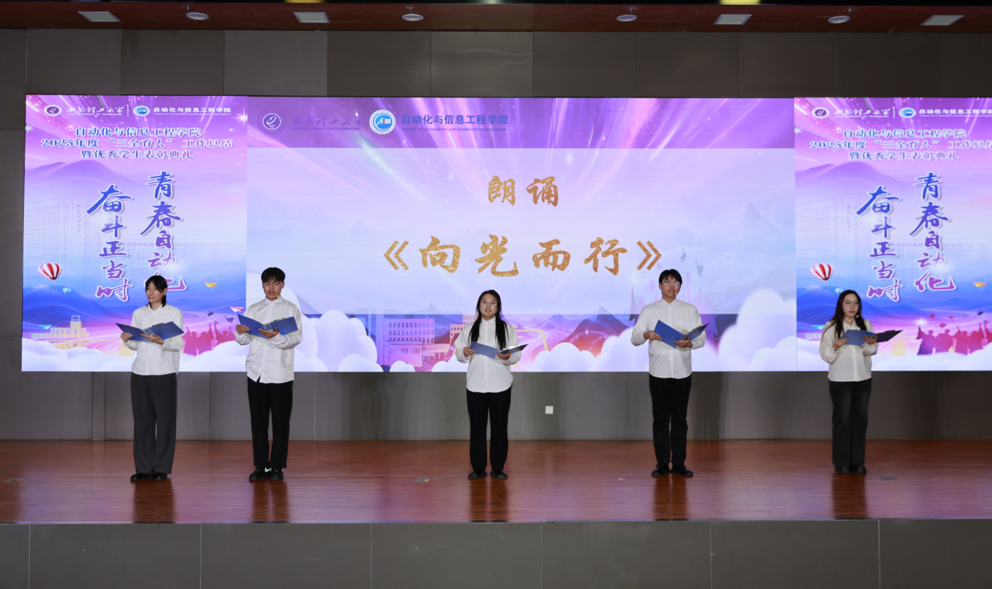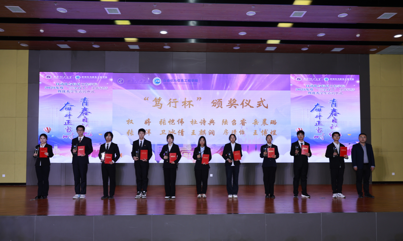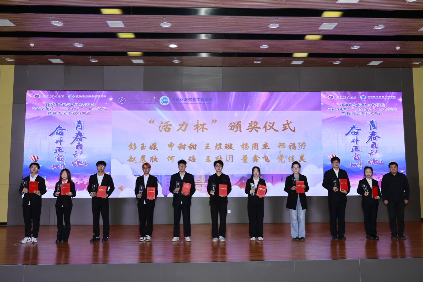 第二篇章“力行·致远”聚焦实践育人与全面发展,舞蹈《九州同》、朗诵《向光而行》、歌曲《裂缝中的阳光》等节目轮番上演,生动诠释了自动化学子昂扬向上的活力、不懈奋进的姿态与脚踏实地的坚守。公司党委书记彰伟,老员工素质教育中心专职副主任翟雨翔,校团委书记金永升分别为“活力杯”“奋进杯”“笃行杯”获奖者颁奖,激励学子们在实践中锤炼本领、在奋斗中成就梦想。