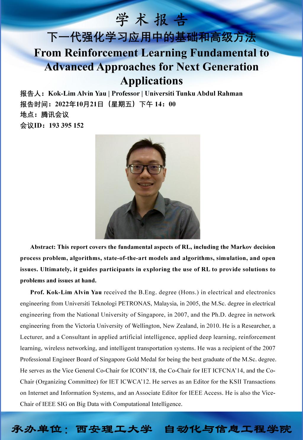 研究生学术年会系列学术报告---下一代强化学习应用中的基础和高级方法
