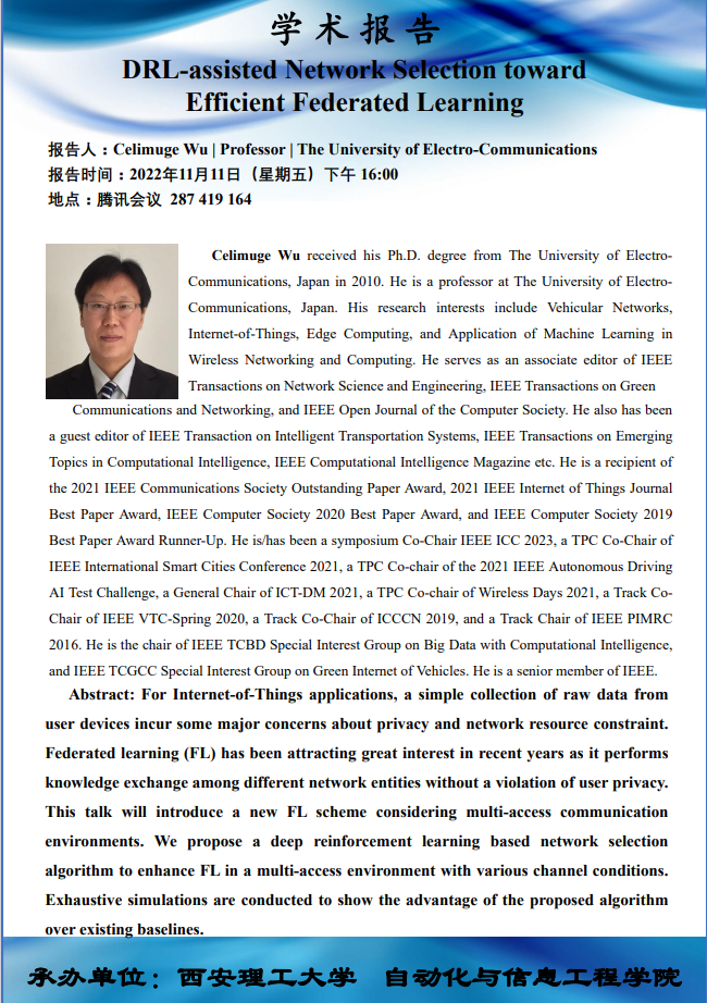 研究生学术年会系列学术报告---DRL-assisted Network Selection toward Efficient Federated Learning