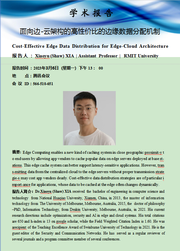 学术报告|面向边-云架构的高性价比的边缘数据分配机制