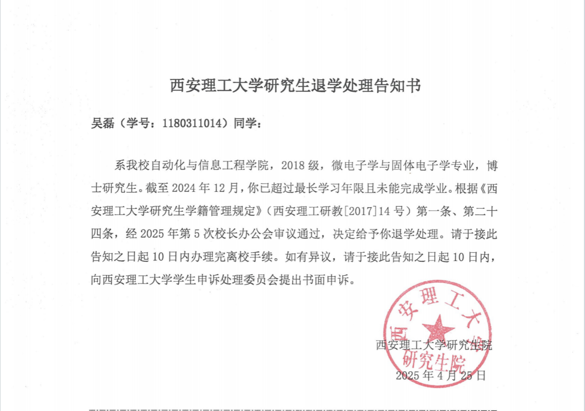 吴磊退学告知书公告